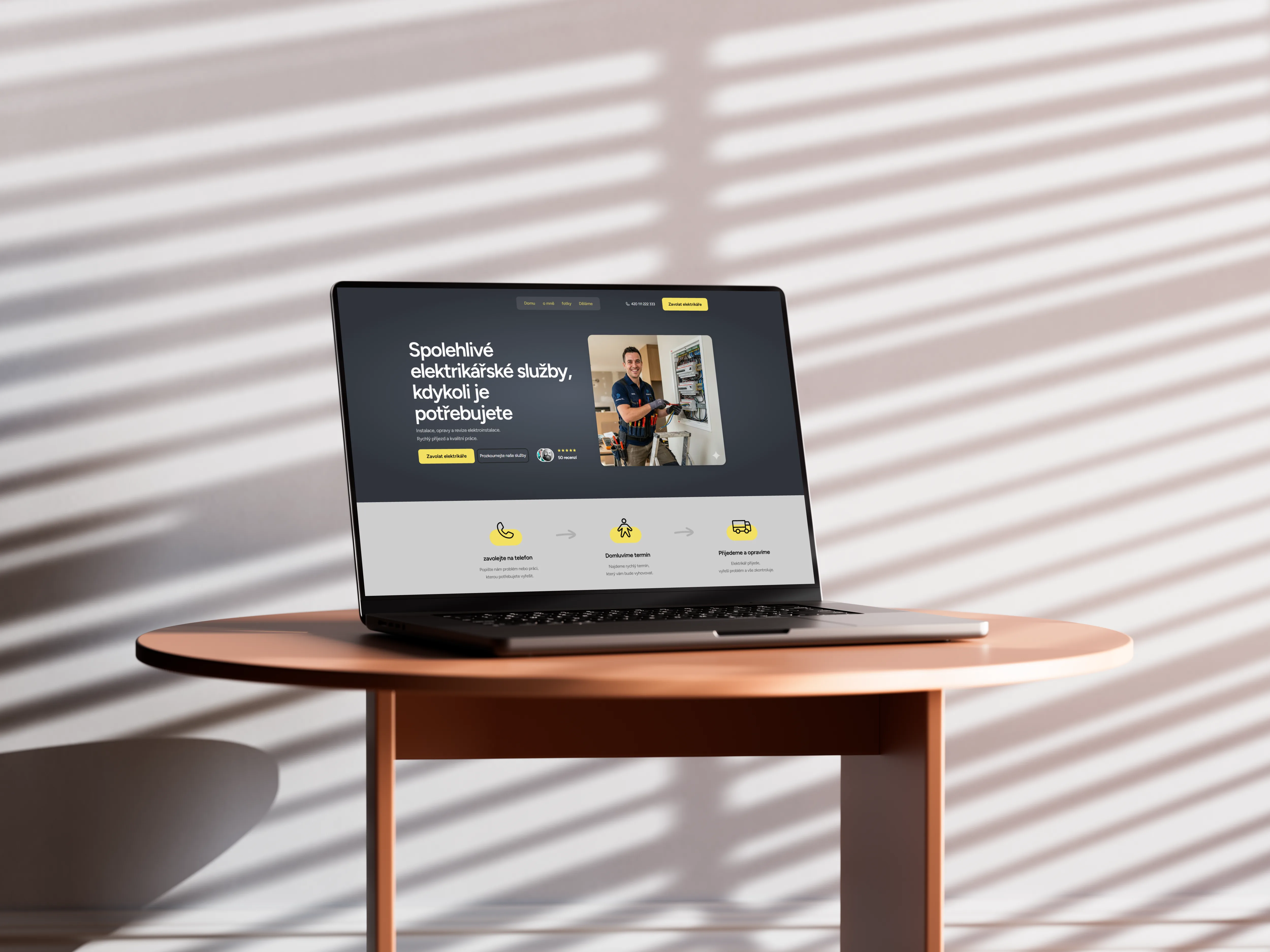 Cílem bylo vytvořit jednoduchý a přehledný web, který pomůže zákazníkům rychle najít služby a snadno kontaktovat elektrikáře.