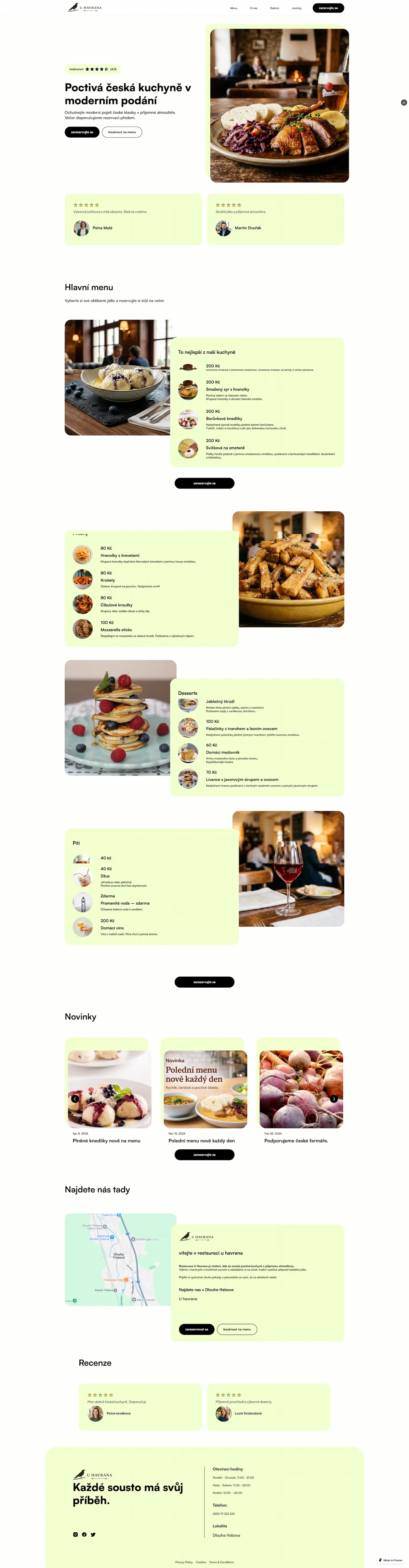 Restaurace nabízí tradiční česká jídla v moderním podání, a proto bylo důležité, aby stejný pocit vyzařoval i samotný web.